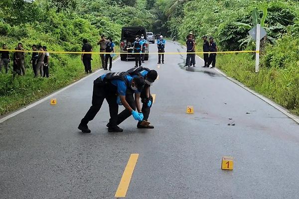 โดยจุดเกิดเหตุอยู่บนถนนสายดังกล่าว พบรอยเลือดไหลเป็นทาง พร้อมร่องรอยรถจักรยานยนต์ จากการตรวจสอบของทางเจ้าหน้าที่ พบว่าคนร้ายใช้อาวุธปืนขนาด .38 ในการก่อเหตุ ครั้งนี้ เบื้องต้นเจ้าหน้าที่ทราบตัวคนร้ายที่ก่อเหตุ อยู่ระหว่างตรวจสอบกล้องวงจรปิดในที่เกิดเหตุ และ เร่งติดตามตัวคนร้ายมาดำเนินคดีตามกฎหมาย