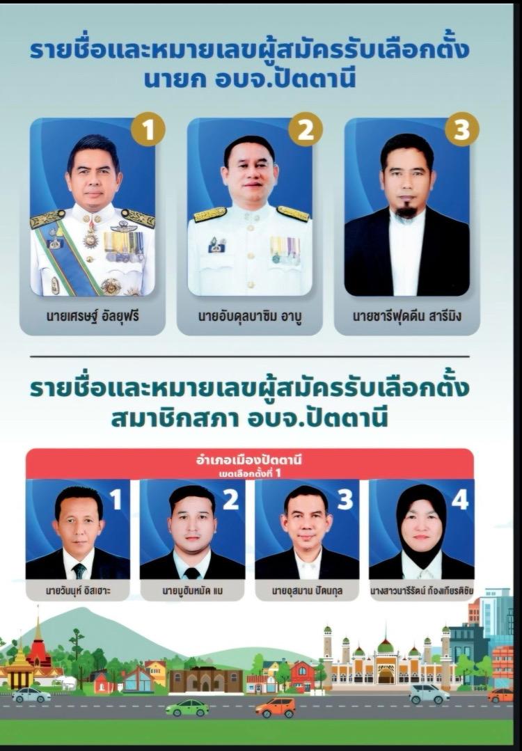 ขอบสนามเลือกตั้ง (อบจ.ปัตตานี‘68)ข่าว ศอ.บต.ข่าวกรมประชาสัมพันธ์ ย้ำ!! อย่าลืมดูรายชื่อเเละเบอร์ให้ชัดเจน.. ก่อนลงคะเเนน 1 กพ.68 (สามารถกดเข้าไปดูรายชื่อผู้สมัครรับเลือกตั้ง ส.อบจ.ปัตตานี และ นายก อบจ.ปัตตานี) By: admin Date: 01/24/2025 แบ่งปัน FacebookTwitterLINECopy URL ผู้เข้าชมทั้งหมด5 รายชื่อ ผู้สมัครรับเลือกตั้ง ส.อบจ.ปัตตานี และ นายก อบจ.ปัตตานี ในเขตเลือกตั้งของท่านคือใคร? 🔎ดูรายชื่อและหมายเลขผู้สมัครรับเลือกตั้งฯ ให้ดีก่อนเข้าคูหา ในวันเสาร์ที่ 1 กุมภาพันธ์นี้ นะคะ #เลือกตั้งท้องถิ่นร่วมกันใช้สิทธิอย่างสุจริตโปร่งใส แบ่งปัน FacebookTwitterLINECopy URL บทความก่อนหน้านี้นายวันสุกรี เเวมามะ นายอำเภอเมืองปัตตานี ยกระดับคุณภาพชีวิตประชาชน ตามหลักปรัชญาเศรษฐกิจพอเพียงบทความถัดไปเสาร์ที่ 1 กุมภาพันธ์ 2568 ออกไปใช้สิทธิ์เลือกตั้ง อบจ. กันน่ะครับ !! HOT News ชาวปัตตานีแสดงความภาคภูมิใจและชื่นชมนักเรียนโรงเรียนสายบุรี ได้รับเกียรติอันสูงสุดให้เข้าร่วมการแสดงโขนหน้าพระที่นั่ง ธปท..- เศรษฐกิจภาคใต้ไตรมาส 3 ปี 2568 ปรับดีขึ้นเล็กน้อยจากไตรมาสก่อน ศอ.บต. ลั่นแผนใหญ่ ‘กระตุ้นเศรษฐกิจ’ เฟสสองต้องไม่จัดแค่คนไทย เปิดชายแดน ‘เอื้อเฟื้อเพื่อนบ้าน’ มาเลเซีย โกลก.- กสทช. ร่วมกับตำรวจภูธรภาคใต้ชายแดนและหน่วยงานที่เกี่ยวข้อง ลงพื้นที่ตรวจสอบเสาสัญญาณโทรศัพท์มือถือบริเวณชายแดนไทย–มาเลเซีย ยะลา – ศอ.บต.จับมือ ป.ป.ส. ผนึกกำลังผู้นำศาสนา 5 จังหวัดชายแดนใต้ ลุยแผนบูรณาการสู้ภัยยาเสพติดเชิงรุก ข่าวเพิ่มเติมRelated ชาวปัตตานีแสดงความภาคภูมิใจและชื่นชมนักเรียนโรงเรียนสายบุรี ได้รับเกียรติอันสูงสุดให้เข้าร่วมการแสดงโขนหน้าพระที่นั่ง กองบรรณาธิการข่าว - 11/06/2025 ชาวปัตตานีขอแสดงความภาคภูมิใจยินดี ภาคภูมิใจ และขอชื่นชม นายณัฐนัย อินทมล (น้องณัฐ) นักเรียนโรงเรียนสายบุรี “แจ้งประชาคาร” ที่ได้รับเกียรติอันสูงสุดให้เข้าร่วมการแสดง โขนหน้าพระที่นั่ง... ธปท..- เศรษฐกิจภาคใต้ไตรมาส 3 ปี 2568 ปรับดีขึ้นเล็กน้อยจากไตรมาสก่อน admin - 11/05/2025 ธปท.- เปิดเผย เศรษฐกิจภาคใต้ไตรมาส 3 ปี 2568 ปรับดีขึ้นเล็กน้อยจากไตรมาสก่อน นายทัดลาภ เผ่าเหลืองทอง ผู้อำนวยการอาวุโส... ศอ.บต. ลั่นแผนใหญ่ ‘กระตุ้นเศรษฐกิจ’ เฟสสองต้องไม่จัดแค่คนไทย เปิดชายแดน ‘เอื้อเฟื้อเพื่อนบ้าน’ มาเลเซีย admin - 11/04/2025 ศอ.บต. ลั่นแผนใหญ่ 'จ.จ.' เฟสสองต้องไม่จัดแค่คนไทย เปิดชายแดน 'เอื้อเฟื้อเพื่อนบ้าน' มาเลเซีย นายปิยะศิริ วัฒนวรางกูร เลขาธิการศูนย์อำนวยการบริหารจังหวัดชายแดนภาคใต้... โกลก.- กสทช. ร่วมกับตำรวจภูธรภาคใต้ชายแดนและหน่วยงานที่เกี่ยวข้อง ลงพื้นที่ตรวจสอบเสา