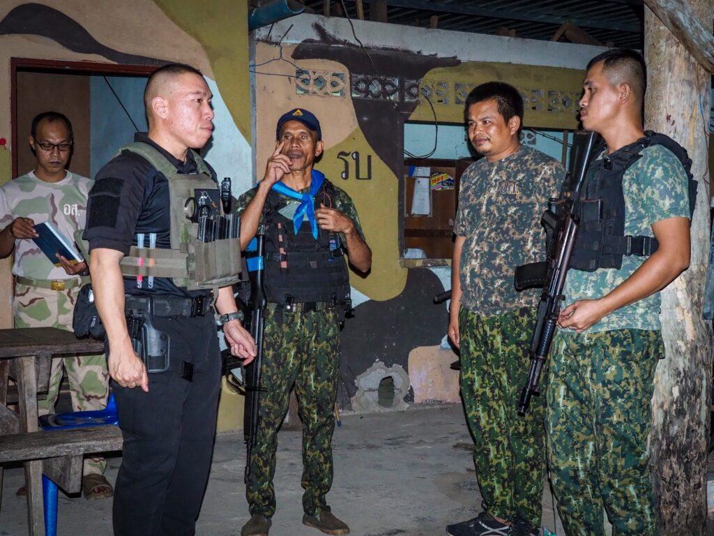 ผู้สื่อข่าวรายงาน วันที่ 27 มิ.ย. 68 พ.ท.ธนพล ศรีวุฒิพงศ์ รอง ผบ.ฉก.ทพ.22 ตรวจเยี่ยม ฐานปฏิบัติการ ชคต.เขาตูม เพื่อแจ้งเตือนข่าวสารความเคลื่อนไหวในพื้นที่ พร้อมแนะนำแนวทางการปฏิบัติด้านยุทธวิธี ในการป้องกันเหตุรุนแรงในพื้นที่ โดยเน้นการปฏิบัติระหว่างทหาร และ จนท.อส. ให้เป็นไปในแนวทางเดียวกัน ตามนโยบายสั่งการของผู้บังคับบัญชา และในการนี้ รอง.ผบ.ฉก.ทพ.22 ได้มอบสิ่งของบำรุงขวัญ เพื่อเป็นขวัญและกำลังใจในการปฏิบัติหน้าที่ ณ ฐานปฏิบัติการ ชคต.เขาตูม อ.ยะรัง จว.ป.น.
