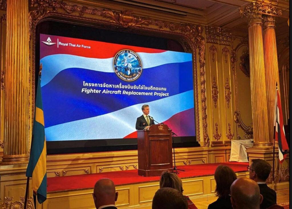 ตามโครงการจัดหาเครื่องบินขับไล่โจมตี ระยะที่ 1 ทั้งนี้ พิธีลงนามจัดขึ้น ณ กรุงสตอกโฮล์ม ราชอาณาจักรสวีเดน โดยมี นายมาริษ เสงี่ยมพงษ์ รัฐมนตรีว่าการกระทรวงการต่างประเทศ Mr.Pål Jonson รัฐมนตรีว่าการกระทรวงกลาโหมสวีเดน Mr.Micael Johansson ประธานเจ้าหน้าที่บริหาร Saab AB (publ) และผู้บริหารระดับสูงเข้าร่วมในพิธี ถือเป็นประวัติศาสตร์ก้าวสำคัญที่แสดงถึงความร่วมมือเชิงยุทธศาสตร์ด้านความมั่นคงระหว่างราชอาณาจักรไทยและราชอาณาจักรสวีเดน การลงนามประกอบด้วย..