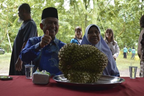 ”ดาโต๊ะ DATOK มาเลเซียเยี่ยมชมสวนทุเรียนเบตง” อำเภอเบตง.– ดาโต๊ะมาเลเซีย รัฐเนกรีเซมบิลัน ประเทศมาเลเซีย เยี่ยมชมสวนทุเรียนเบตง พบปะพูดคุย กับ เกษตรกรชาวสวน ชมการสาธิตการเก็บเกี่ยวผลทุเรียน ดำเนินงานแปลงต้นแบบของนายวิสุทธิ์ โชตน์ธนานันต์ เจ้าของสวนเกษตรกรชาวสวนทุเรียนพื้นที่แปลงใหญ่ในพื้นที่ ตำบลตาเนาะแมเราะ อำเภอเบตง จังหวัดยะลา