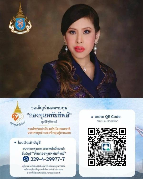 “กองทุนหทัยทิพย์” จึงถือกำเนิดขึ้นจากความตั้งใจของข้าพเจ้าที่จะรวมพลังของทุกฝ่ายให้การบรรเทาทุกข์และสร้างความสงบสุขแก่ปวงชนชาวไทย ข้าพเจ้าขอมอบเงินส่วนตัวจำนวน 1,000,000 บาท สมทบ “กองทุนหทัยทิพย์” เพื่อเป็นเงินทุนตั้งต้นในการขับเคลื่อนการดำเนินงานในกิจกรรม หรือโครงการสาธารณประโยชน์ต่าง ๆ ตามวัตถุประสงค์ของการจัดตั้งกองทุนฯ สร้างความปลอดภัยและบรรเทาผลกระทบต่อประชาชน และเจ้าหน้าที่ผู้ปฏิบัติงานให้สามารถดำรงชีวิตต่อไปอย่างปกติสุข